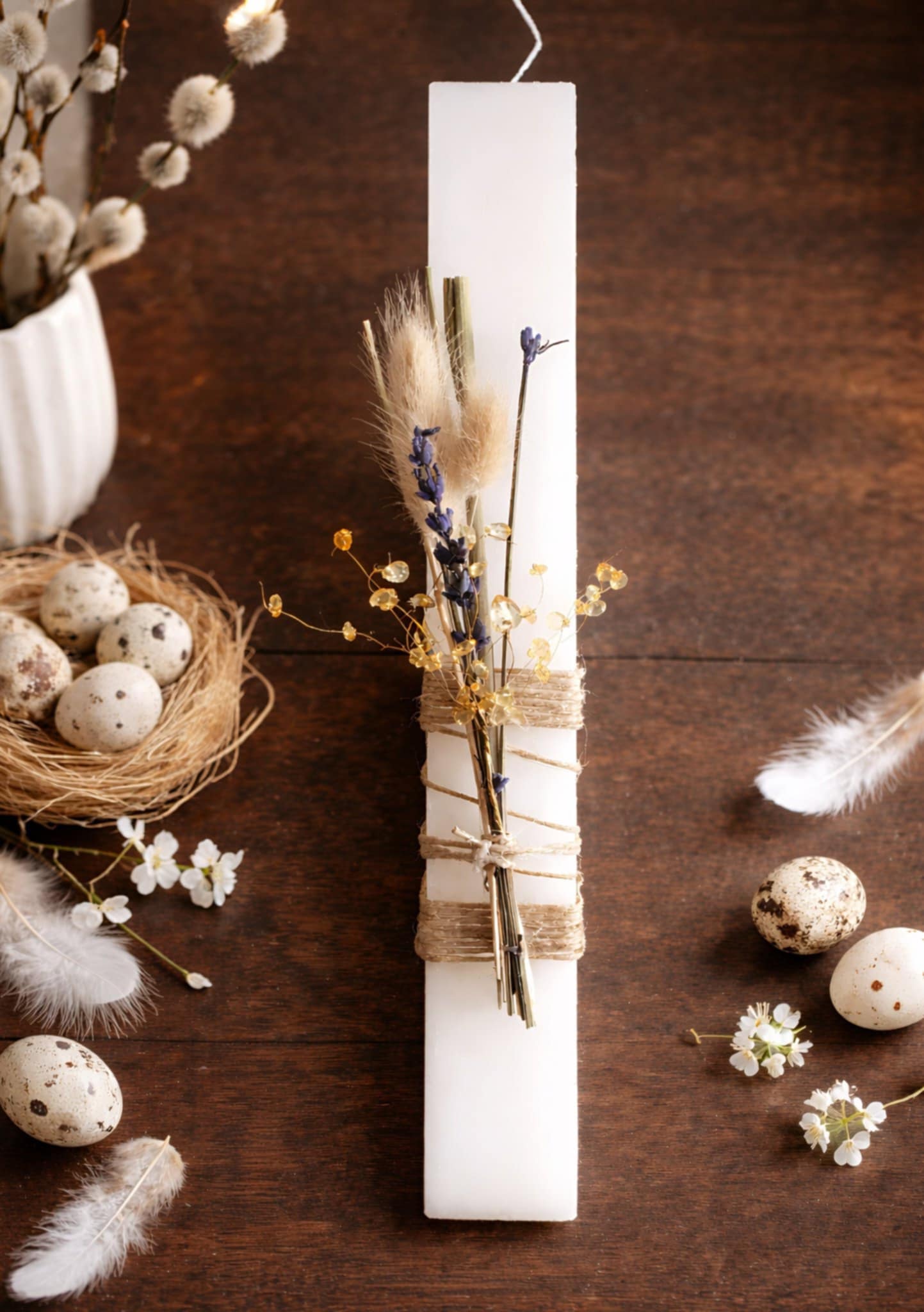 Λαμπάδα πλακέ με αποξηραμένα λουλούδια