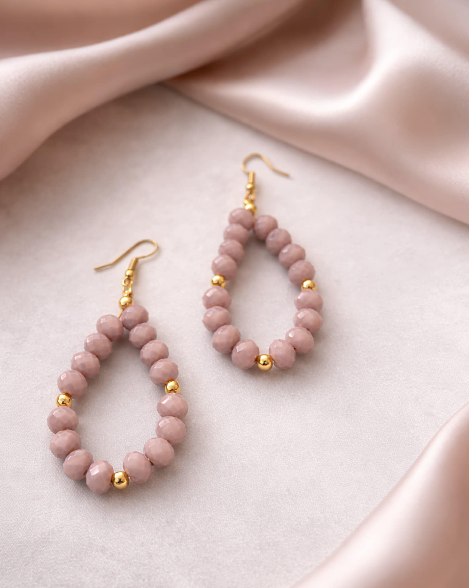 Σκουλαρίκια επίχρυσα με γυάλινες χάντρες σε μωβ λιλά απόχρωση