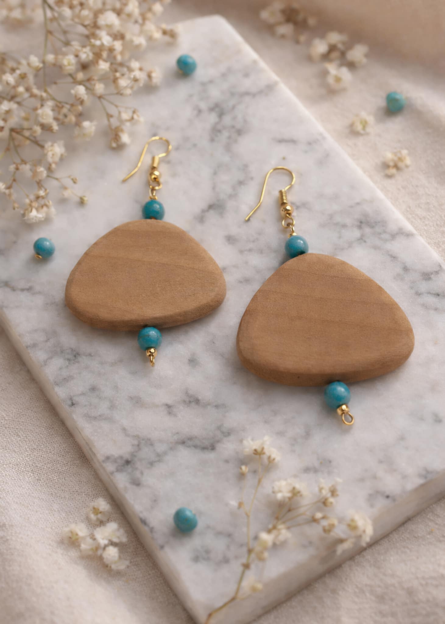 Σκουλαρίκια επίχρυσα με ξύλινα στοιχεία & χάντρες αχάτη