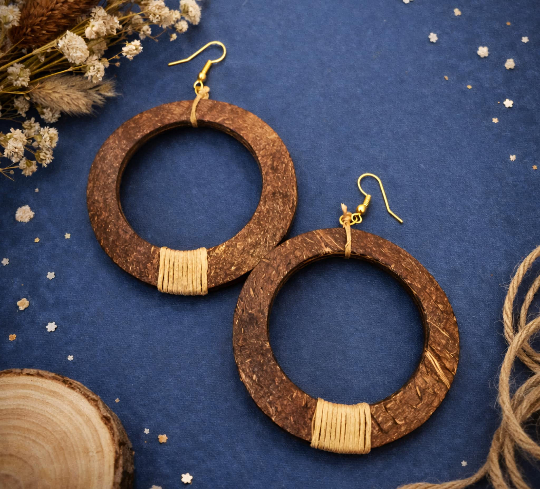 Σκουλαρίκια με ξύλινους κρίκους