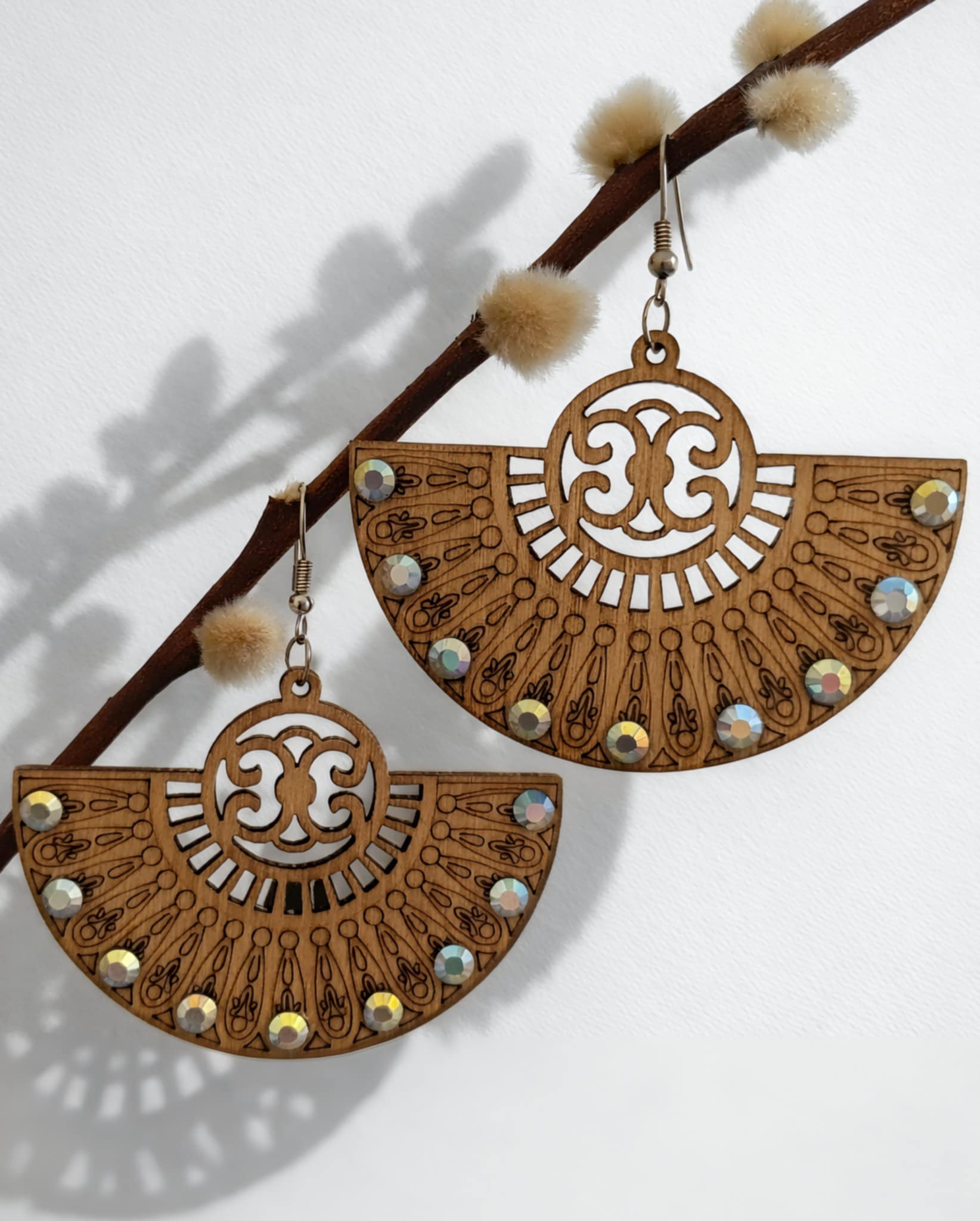 Σκουλαρίκια ξύλινα με strass τύπου Swarovski ιριδίζον