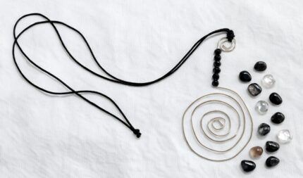 Κολιέ με μαύρο κορδόνι, σύρμα και γυάλινες χάντρες