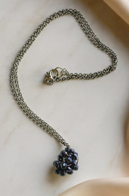 Κολιέ με ατσάλινη αλυσίδα και γυάλινες χάντρες