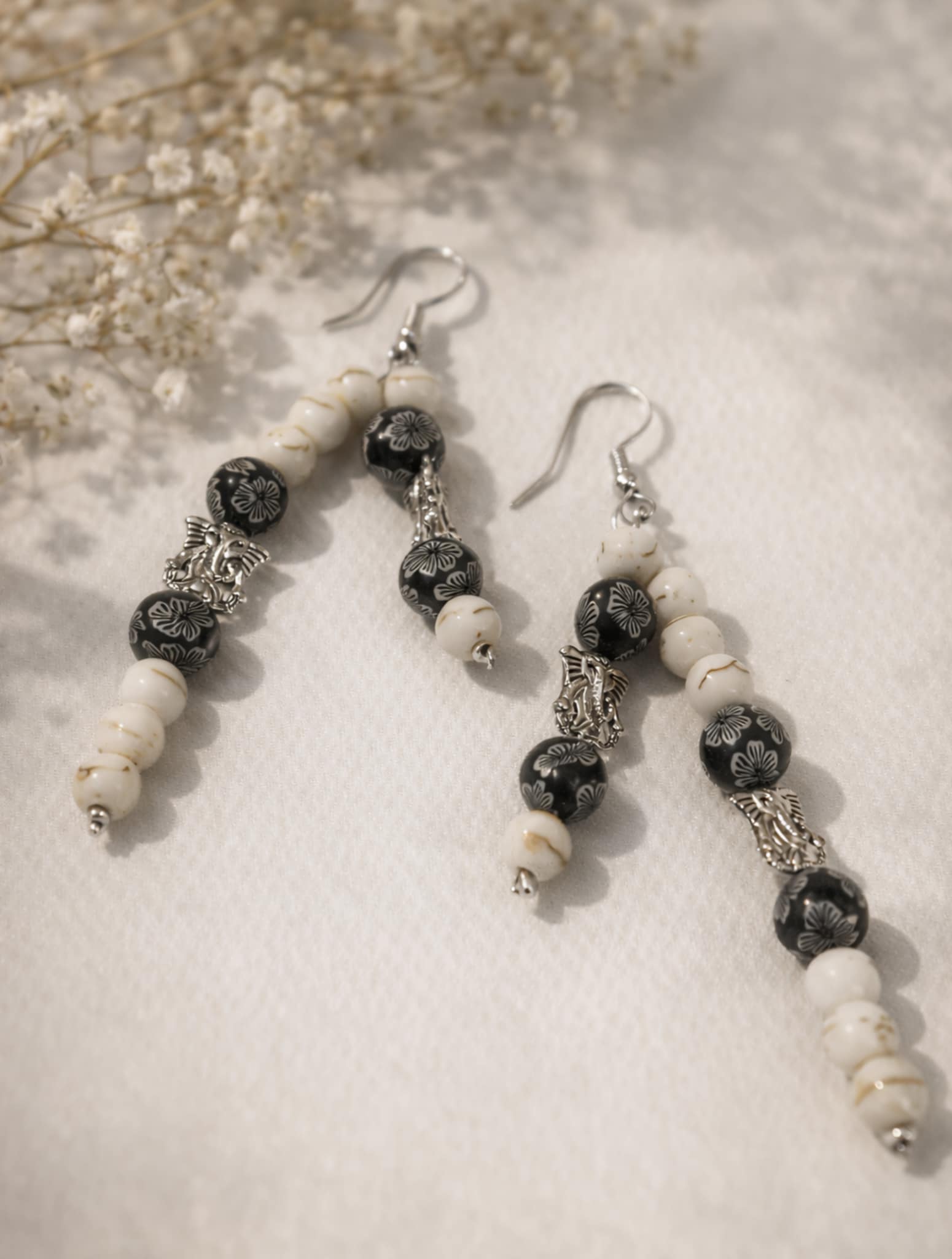 Σκουλαρίκια επάργυρα με λευκό αχάτη και κεραμικές χάντρες