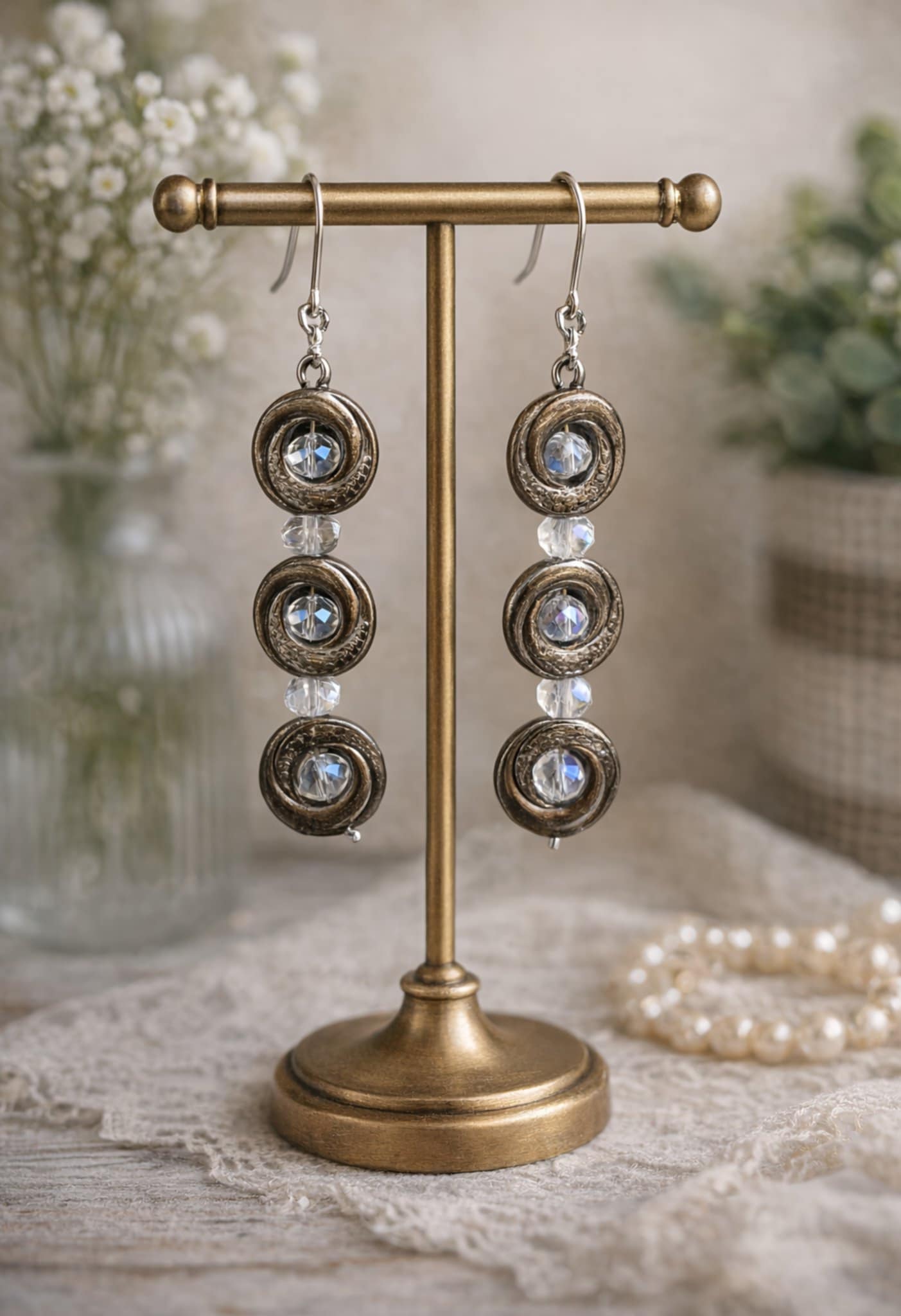 Σκουλαρίκια με γυάλινες χάντρες & επάργυρα στοιχεία